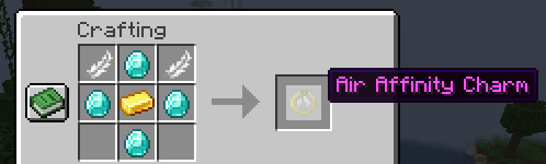 The Charm is crafted with  2 Feathers, 4 Diamonds and 1 gold Ingot.