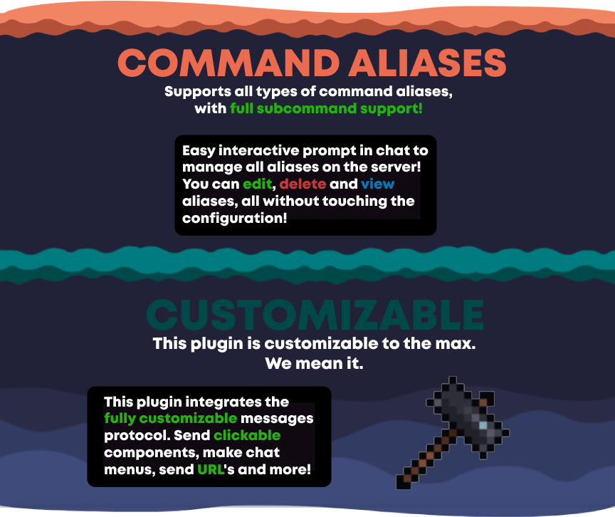 COMMAND ALIASES Supports all types of command aliases, with full subcommand support!