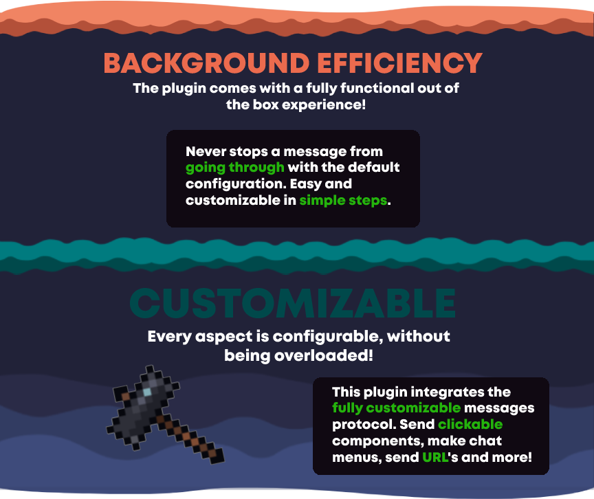 This plugin integrates the fully customizable messages protocol. Send clickable components, make chat menus, send URL's and more!