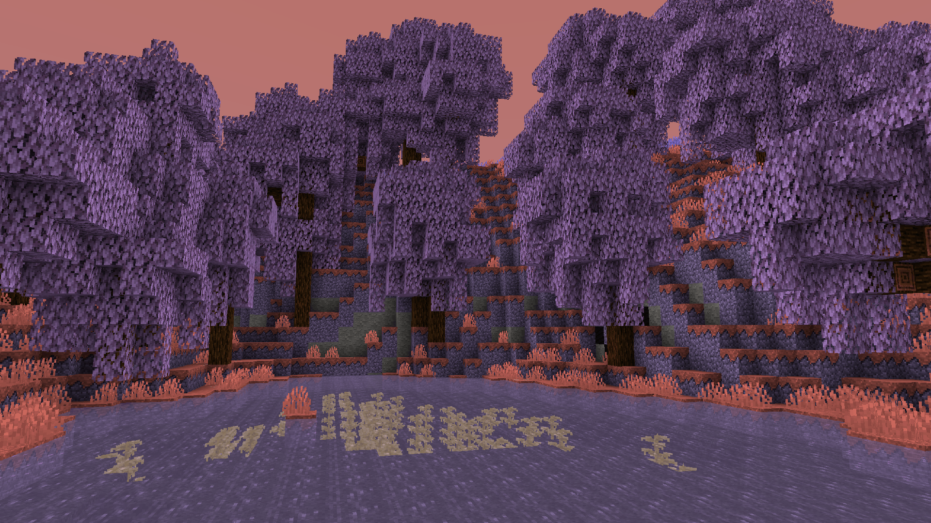 A rare biome found out in the sea. There are special trees here, along with Purple Whirlyflowers on the ground and special corals in the water. Glarewraiths don't burn here and they are the only mob that spawns.