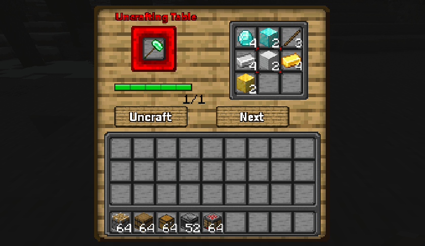 Need to dismantle multiple items at once? Simply hold the Shift key while clicking the Uncraft button. The table will automatically process as many items as possible until the input runs out or the output slots are full, saving you time and clicks.
