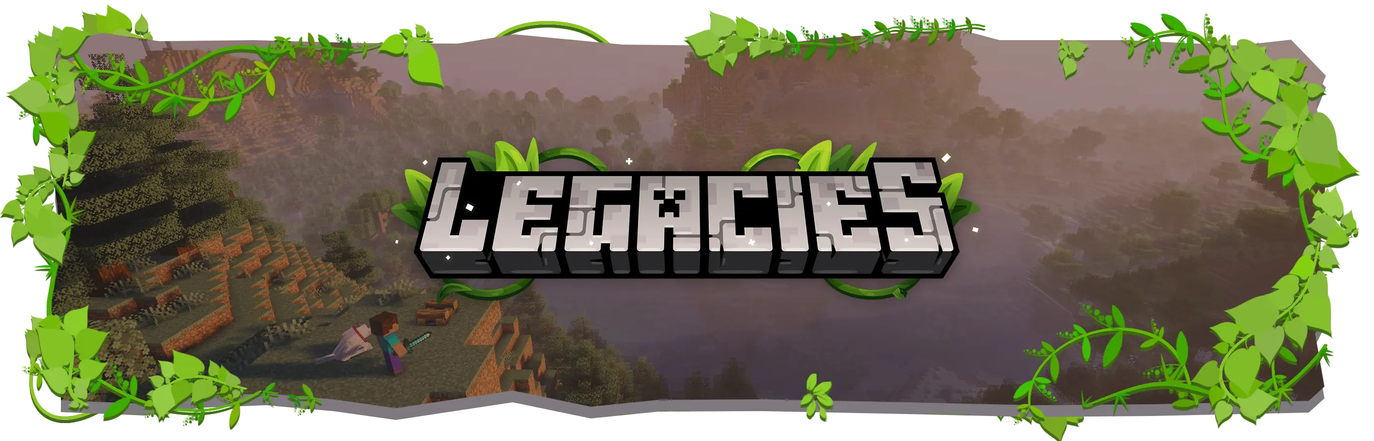 Legacies is a unique, heavily-custom modpack focused on recapturing and reimagining the best aspects of Minecraft's familiar style. Featuring several hundreds of hours and over a year of development, Legacies intends to faithfully fulfill the vanilla style in a unique, bold and expansive way - with a plethora of custom mods and integration created throughout the course of development in order to accomodate for this goal in order to provide a comprehensive experience like no other.
