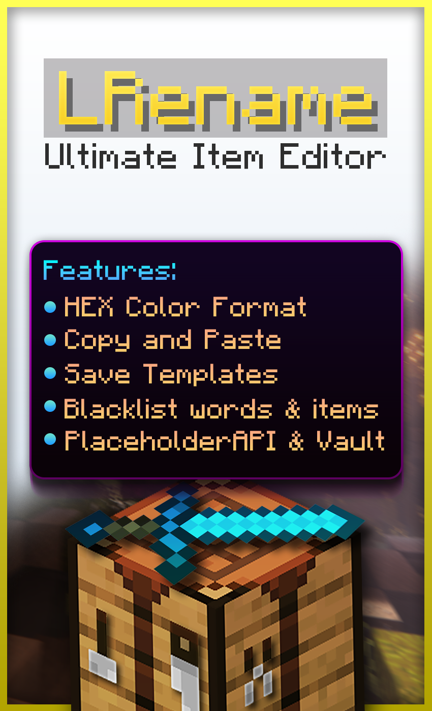 - Economy Integration: Charge players Vanilla XP levels or Vault economy money for editing their items.