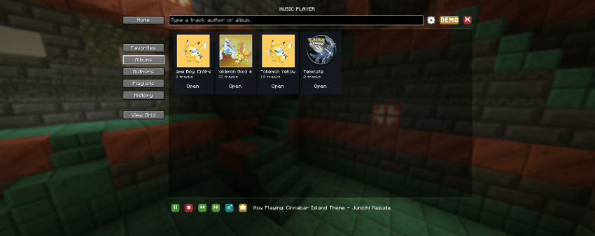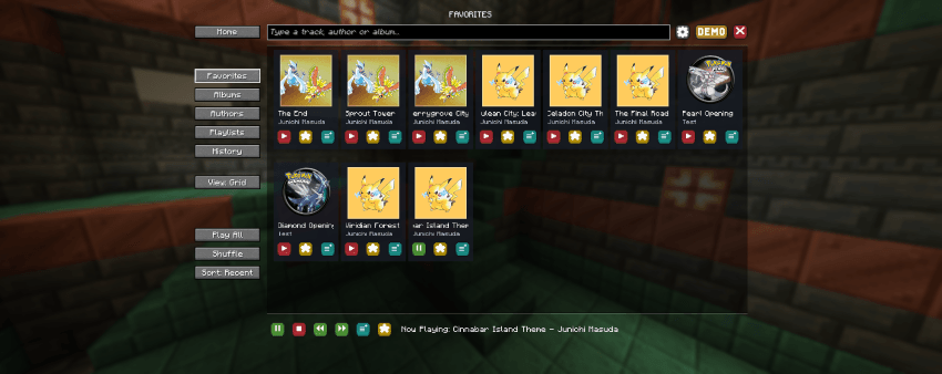 A modern in-game music player for Minecraft with playlists, favorites, album covers and full control over custom music libraries.