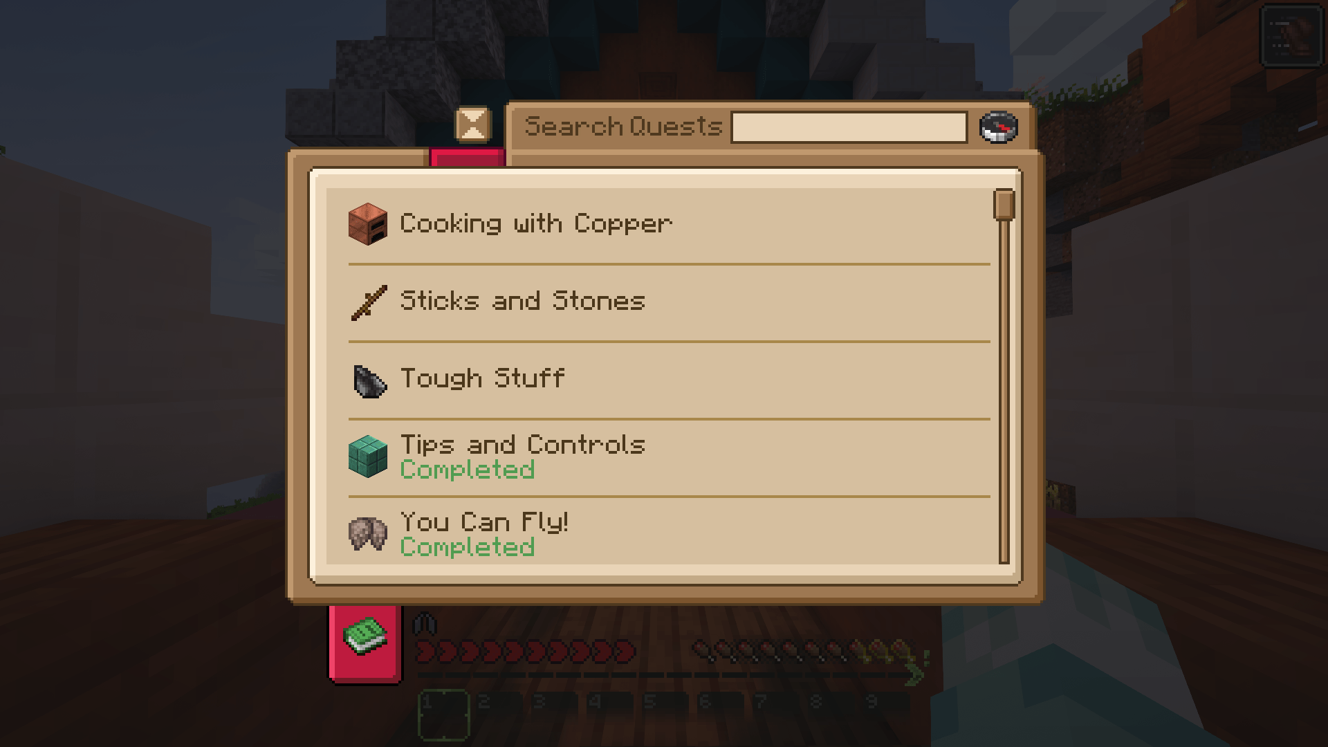 Well! Unlike FTBQuests, which presents its quests in sprawling spreadsheets, this mod's quests are presented in a little book/checklist-style format, and are directly highlighted via notification badges when unlocked from the inventory GUI!