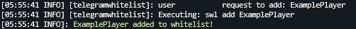 When you write bot nickname of player, bot execute your whitelist command on proxy server