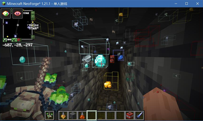 This screenshot was taken while developing Confluence: Otherworld's Mining Potion. The ore markers are implemented via this mod.