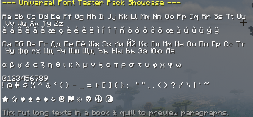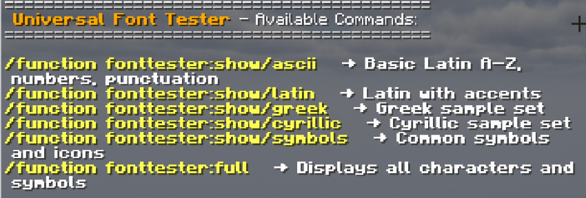 The Universal Font Tester datapack allows you to visualize and test fonts in real time, right inside Minecraft. It’s especially useful when: