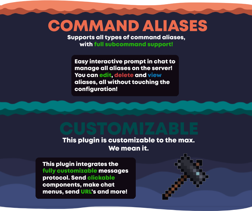 COMMAND ALIASES Supports all types of command aliases, with full subcommand support!