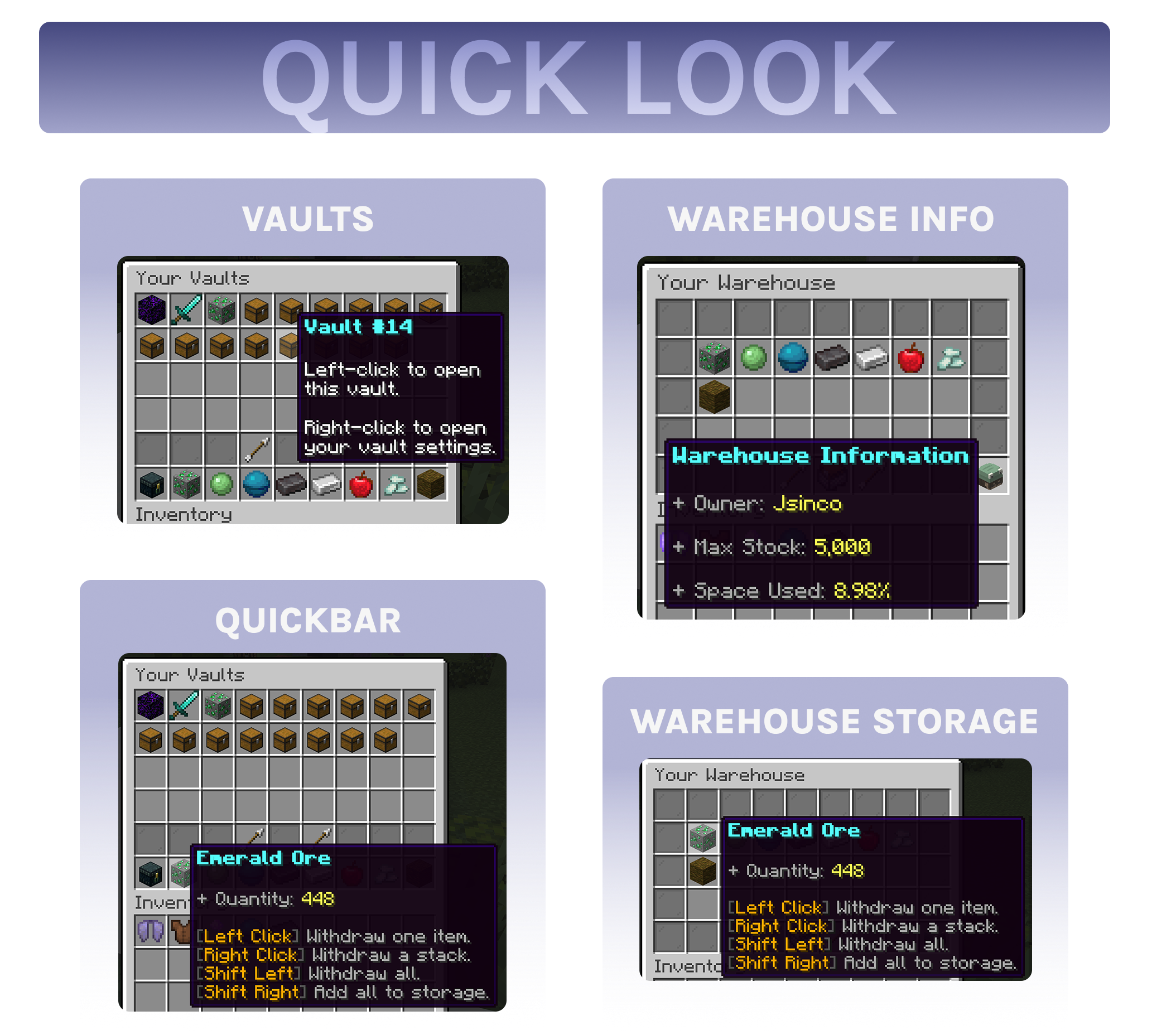 An open-source and free Vaults plugin that incorporates a warehouse for mass item storage.