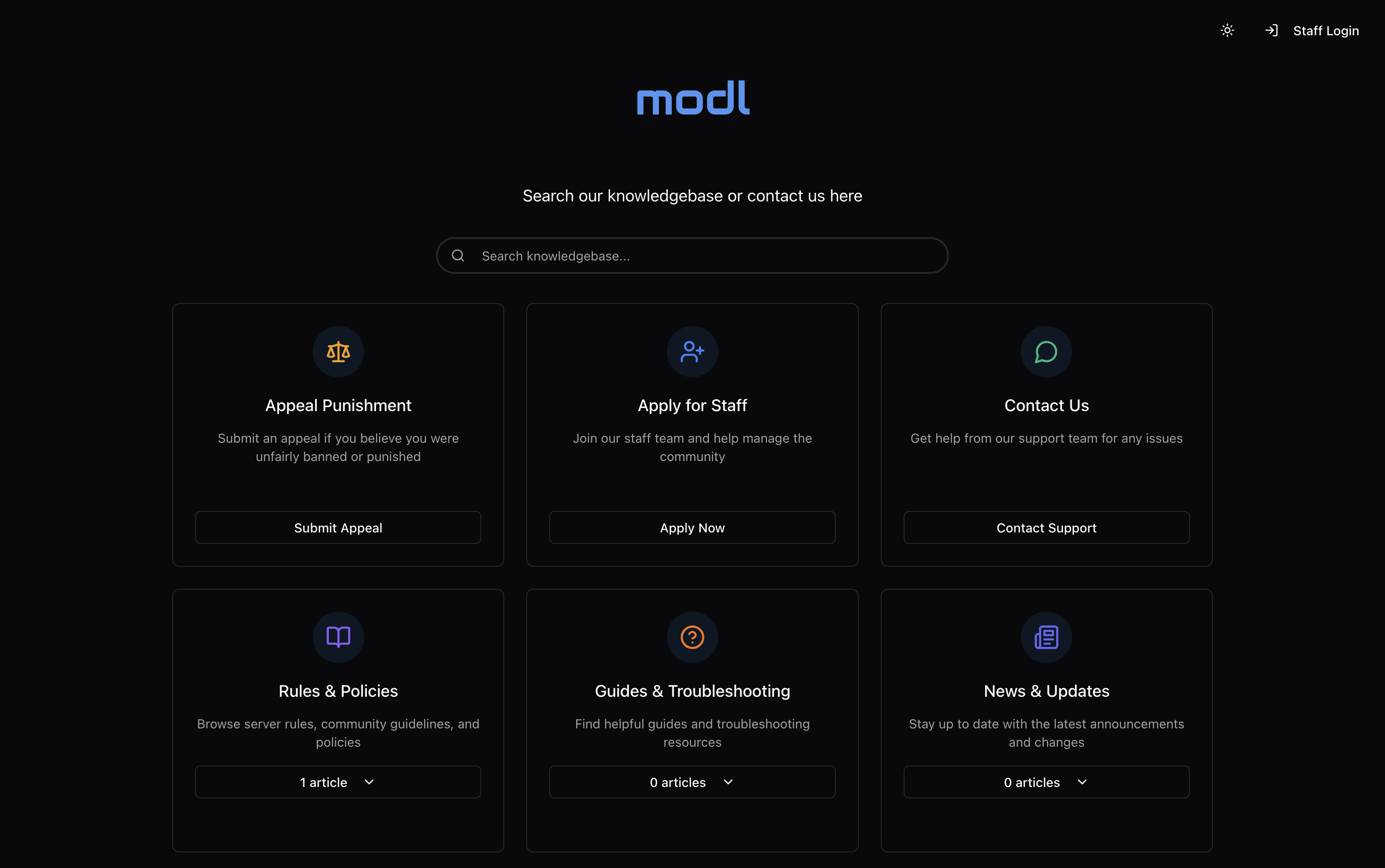 Free forever and completely branded for your server - your players and staff will not see any modl.gg branding (assuming you enable custom domain).
