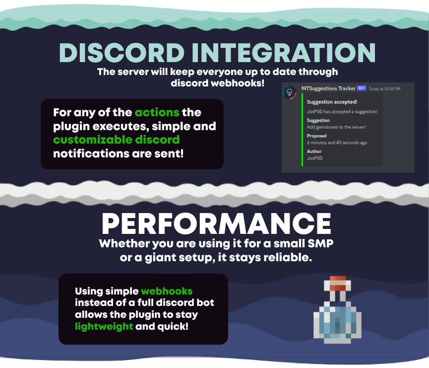 Using simple webhooks instead of a full discord bot allows the plugin to stay lightweight and quick!