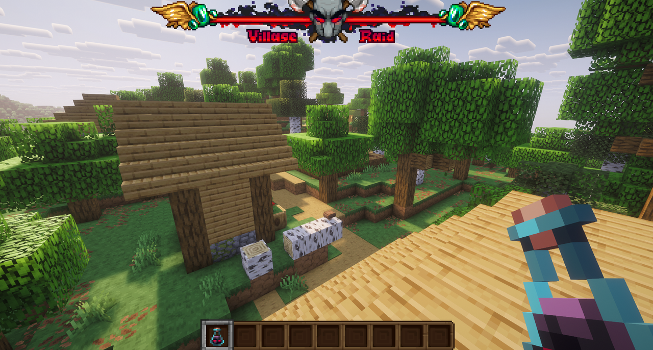 2/ The raid bar had different stages including one that tells the player how many remaining illagers there are. This message contains a dash symbol that cannot be removed, so it will slightly offset the bar to the left.
